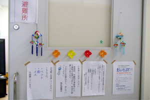 炊事などはLPガスのボンベを設置して、しのいでいる。柏崎市では市ガス水道局が天然ガスを供給しているため、施設の厨房機器もすべて都市ガス用だが、LPガスで使えるようにするための変換器が役立っていた。