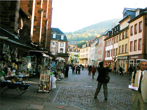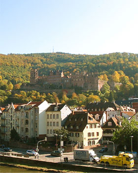 第二次世界大戦の戦禍を免れたこともあり、ネッカー川左岸の旧市街は、まさに古都の風情である。さらには、川岸の丘の上に建つ古城。この町が年間350万人もの人が訪れるドイツ第一の観光都市、というのもうなずける。