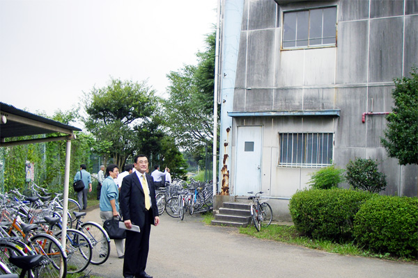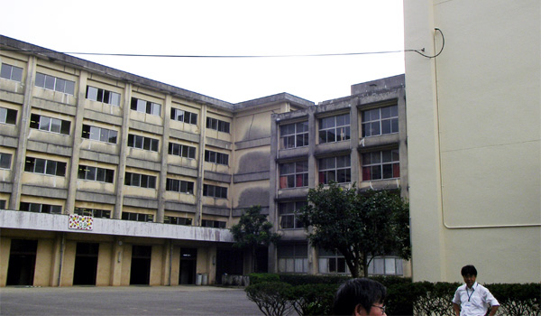 改修途上の旭高校。外壁塗装前と後では、こんなに違う。体育館の外壁も真っ黒です。